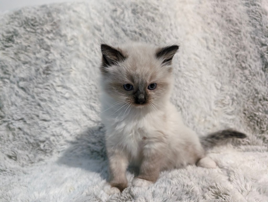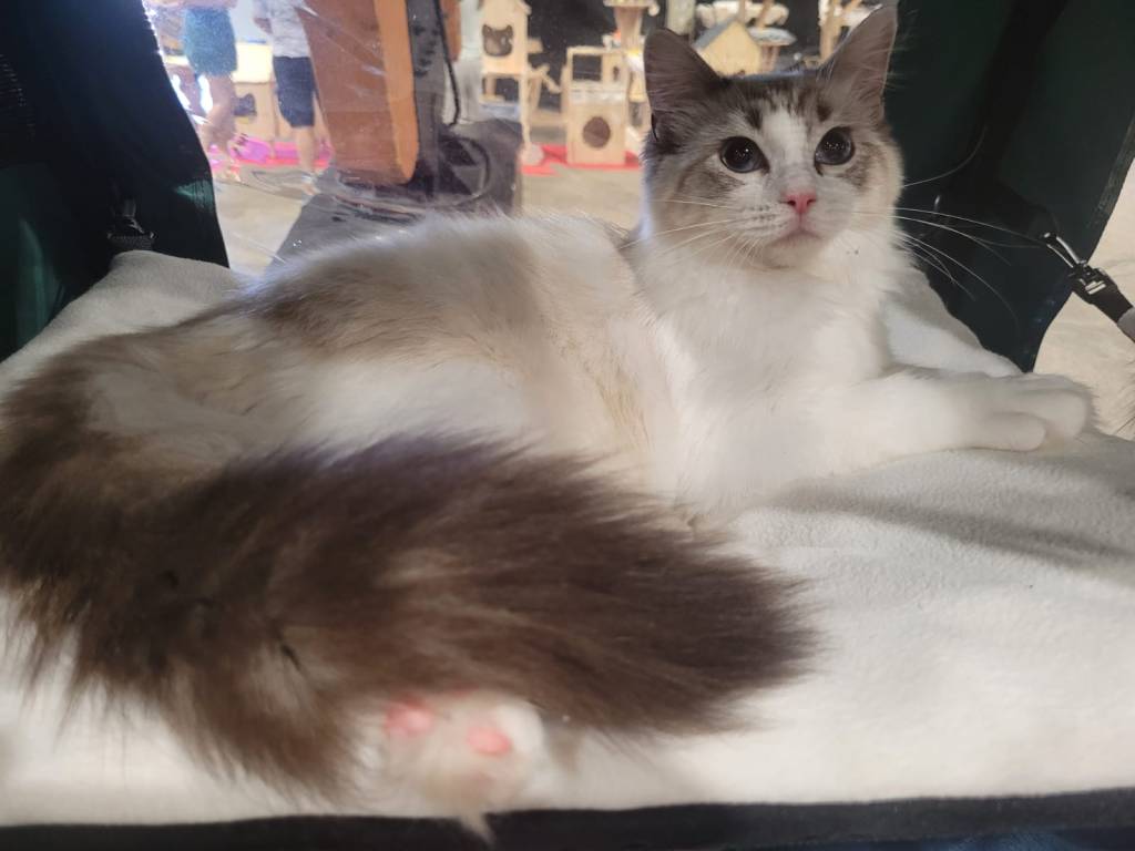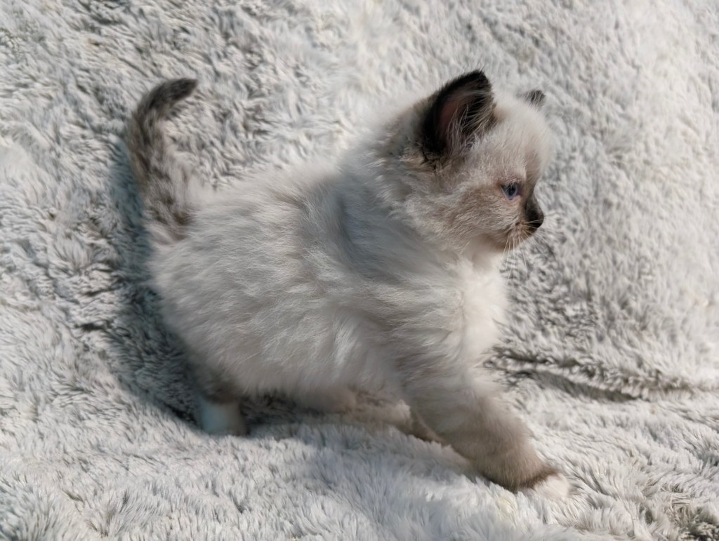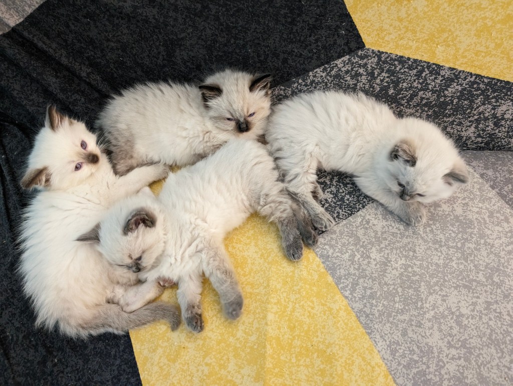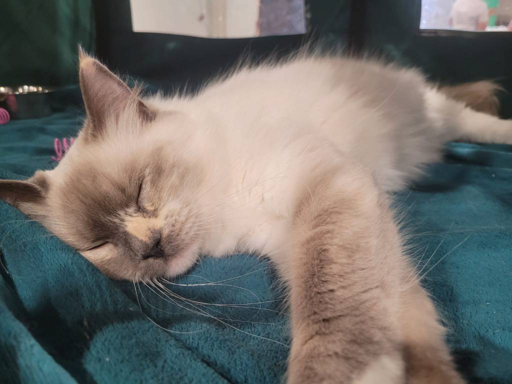Petit moment de bonheur avec l’un des chatons de Nina et Saturne après un gros biberon.